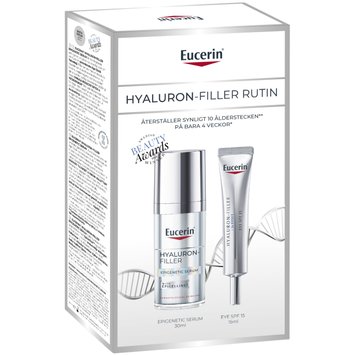 Hyaluron-Filler Eye Cream SPF 15: Aqua, Glycerin, Ethylhexyl Salicylate, Butylene Glycol Dicaprylate/Dicaprate, Synthetic Beeswax, Methyl propanediol, Behenyl Alcohol, Butyl Methoxydibenzoylmethane, Ethylhexyl Triazone, Hydro genated Coco-Glycerides, Octyldodecanol, Stearyl Alcohol, Hydroxypropyl Starch Phosphate, Bis-Ethylhexyloxyphenol Methoxyphenyl Triazine, Cetyl Palmitate, Distarch Phosphate, Glyceryl Stearate Citrate, Phenylbenzimidazole Sulfonic Acid, Sodium Hyaluronate, Glycine Soja Germ Extract, Glycyrrhetinic Acid, Xanthan Gum, Sodium Hydroxide, Trisodium EDTA, 1,2-Hexanediol, Caprylyl Glycol, Ethylhexyl glycerin, Phenoxyethano